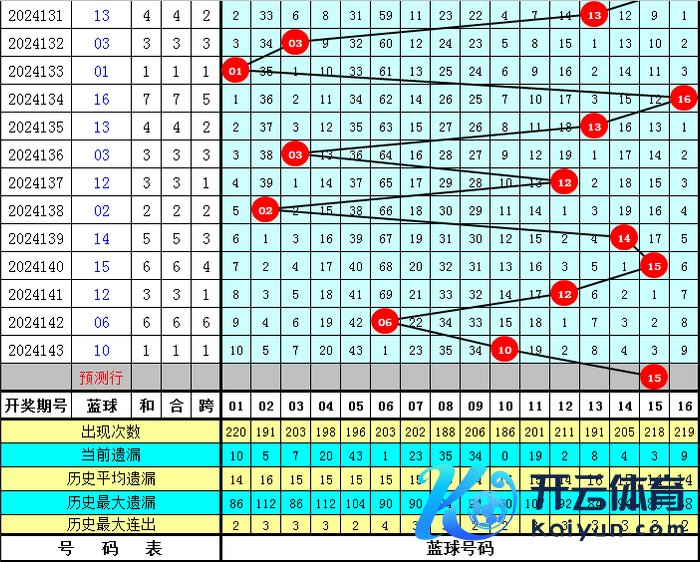 蓝球号码分析:上期蓝球为10,开出1路号码,蓝球最近10期012路比为5:3:2,最近30期012路比为11:14:5,最近100期012路比为37:39:24,本期蓝球看好0路号码,四码蓝球参考03、06、12、15。
