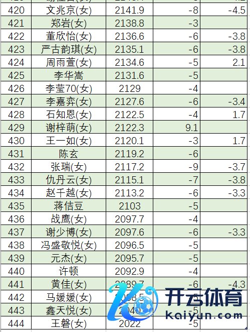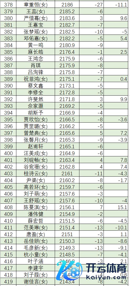 康 鹏 2126.3 杨棋棋* 2125.9 王嘉琪* 2122.0