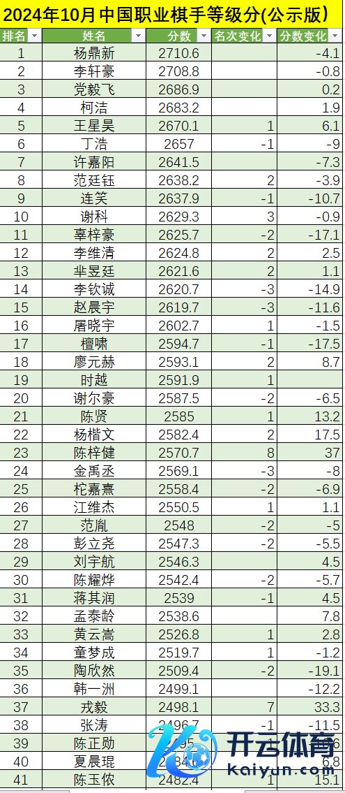 实现2024年10月31日,中国工作棋手品级分名次公示。与上个月比较,前四名次未变,王星昊由第六名飞腾至第五名,丁浩退居至第六名。10月份总对局数为445局。共有5名棋手升段,孟泰龄、陈梓健升为八段,张子涵、徐晶琦升为四段,张轩铭升为三段。