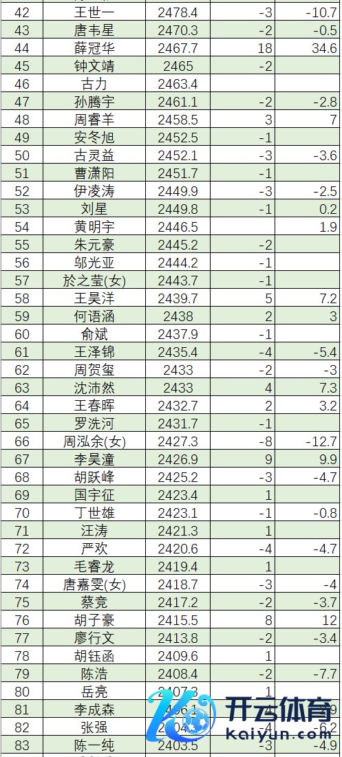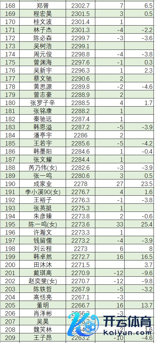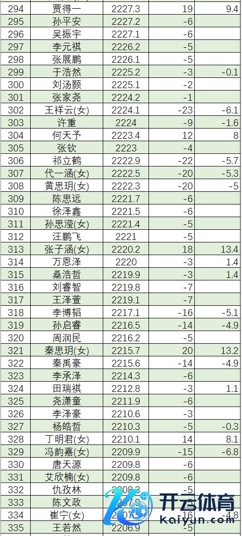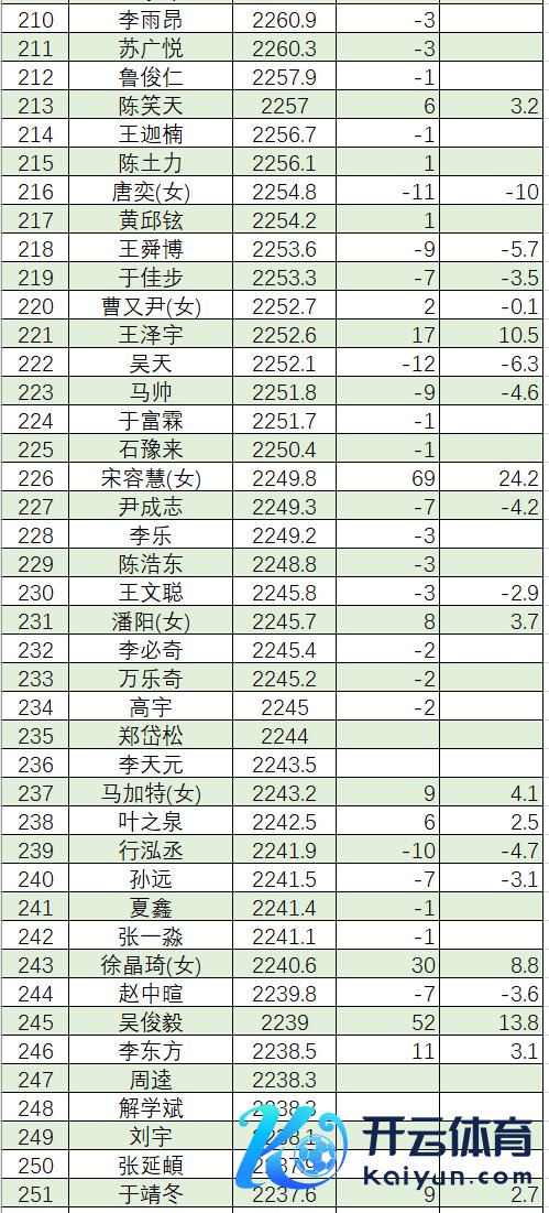 赵俊哲 2243.5 吴 锴 2243.0 陈博雅 2243.0
