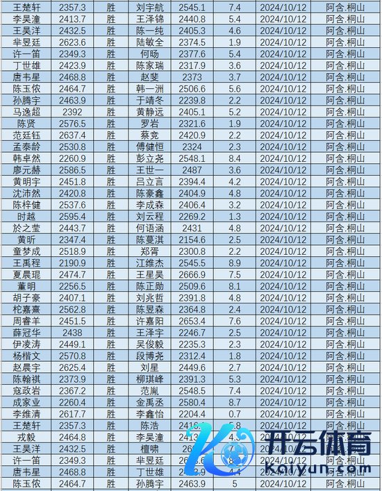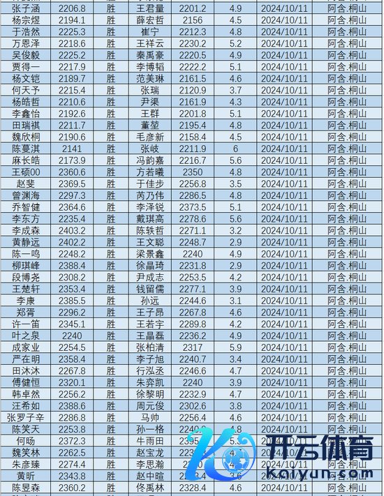张奕超 2240.0 朱阿逸 2239.0 宋子睿 2238.4
