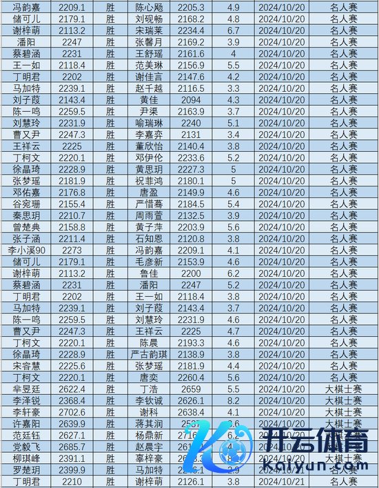 2024年10月升段棋手名单: