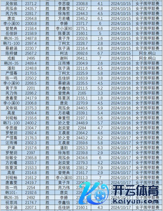 严凯瑾* 2234.8 程 不雅 2233.7 陈倩薇* 2233.4