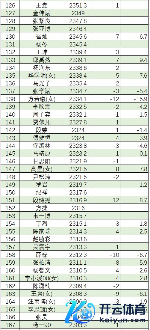 聂卫平 2333.1 陈 瑞 2332.0 庞 延 2330.0