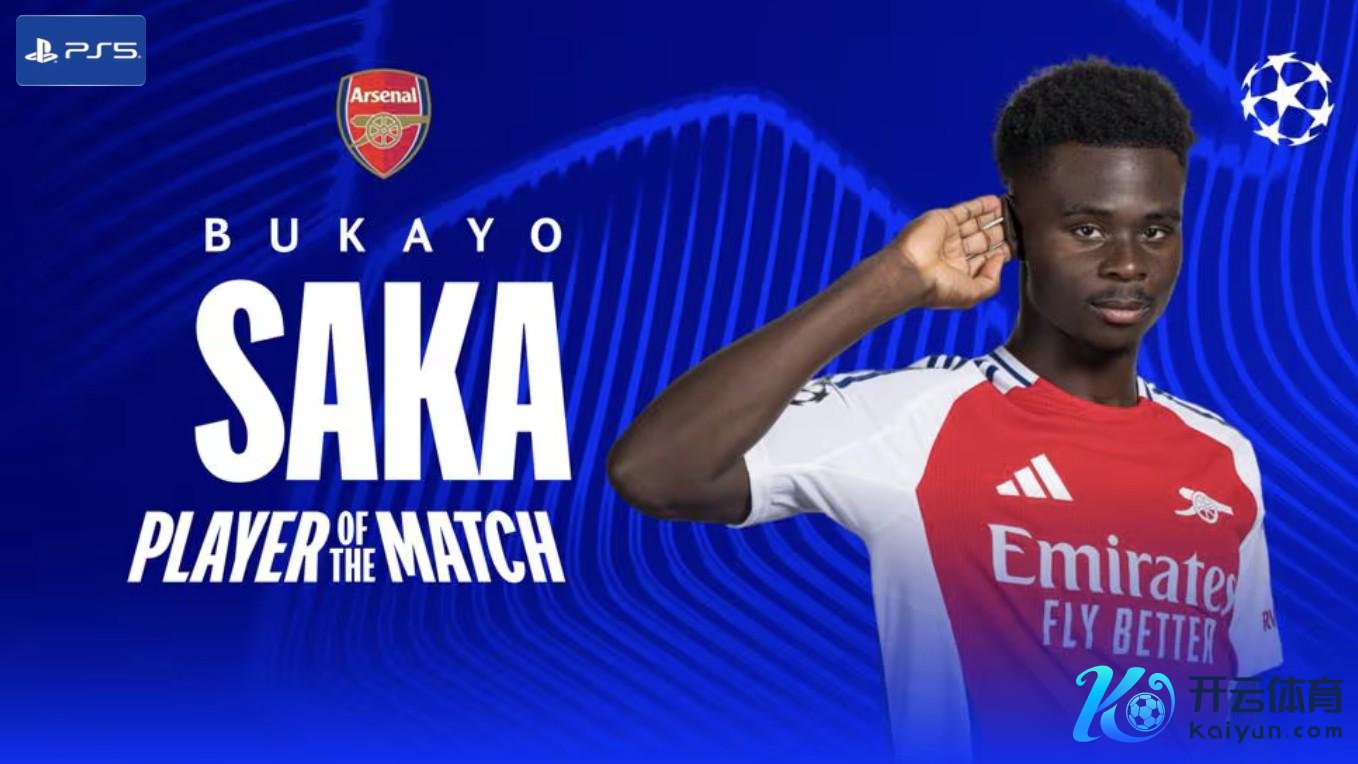 在本场比赛中,萨卡打入了两个进球,并孝敬了一个助攻,凭借一己之力匡助阿森纳在主场以3-0的比分顺服了摩纳哥。