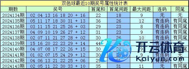 上期开奖:福彩双色球第2024143奖号为:02 05 11 22 30 33 + 10,红球和值为103,最大间距为11,奇偶比为3:3,三区比为3:1:2。